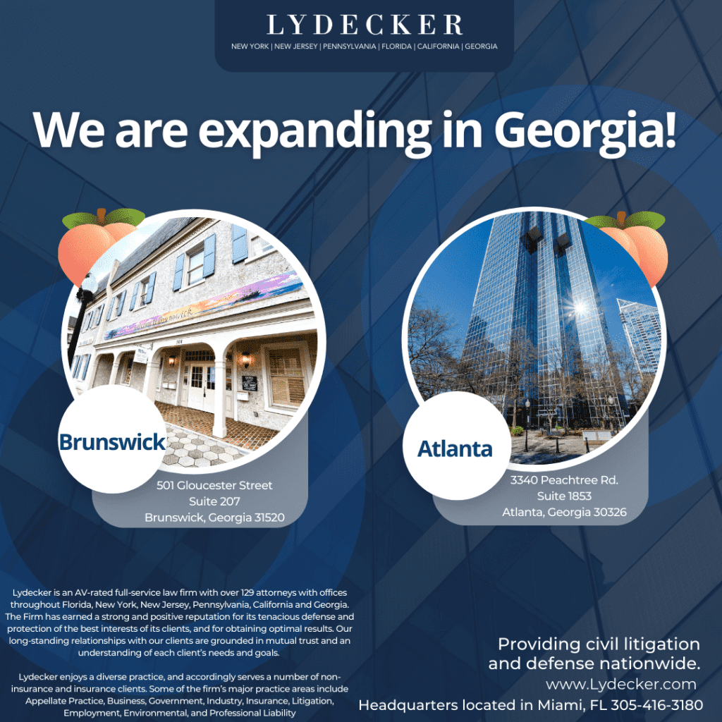 Miami, FL [November 7, 2023] – Lydecker, a financial and business prominent law firm known for its exceptional legal services with over 130 attorneys in 6 states, is thrilled to announce its expansion into Georgia with the opening of two new offices, strategically located in Atlanta and Brunswick Georgia.